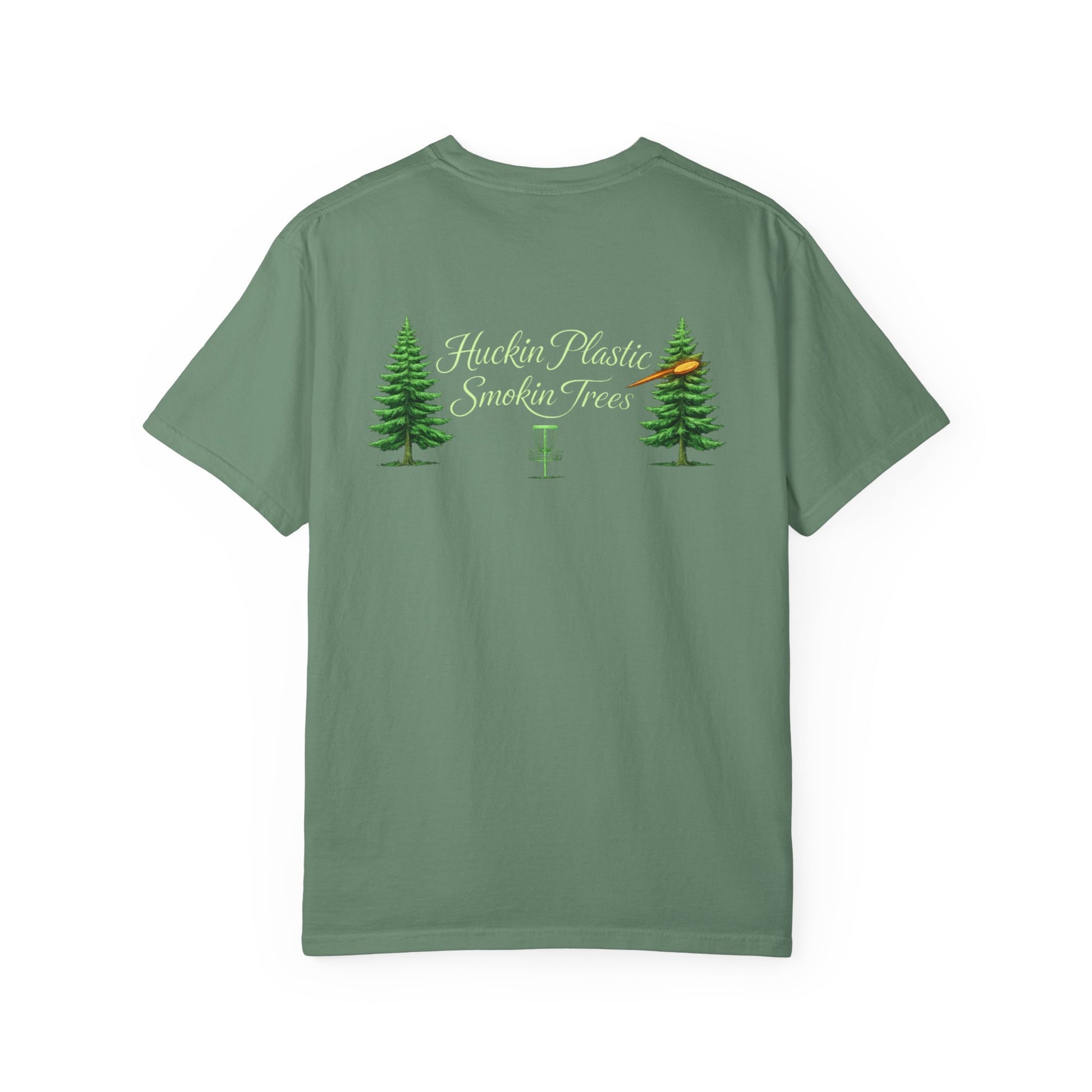 Disc Golf T-Shirt — “Huckin' Plastic Smokin' Trees” Forest Graphic