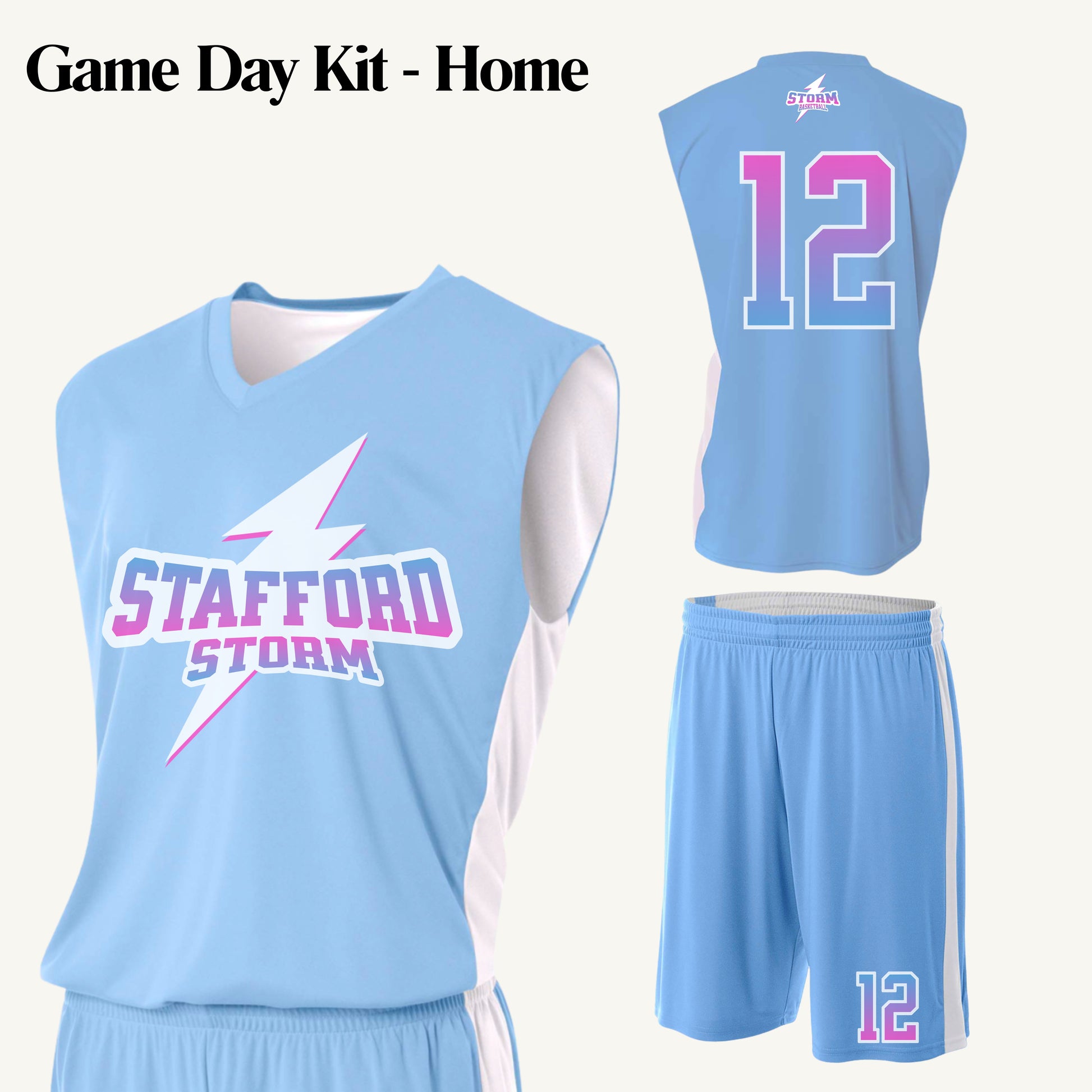 Uniform kit includes practice shorts, reversible practice jersey. Game day reversible shorts and game day reversible jersey